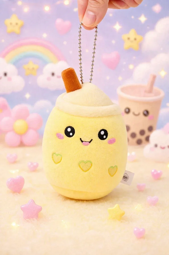 🍋🧋✨ Craquez pour ce porte-clé peluche bubble tea kawaii jaune, aussi mignon qu’original ! 💛